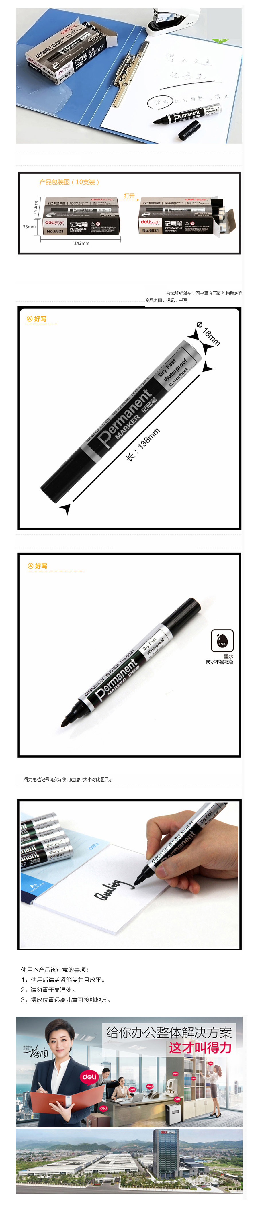 品名:得力(deli) 记号笔 6821 物流专用 经典实用 10支/盒 黑色