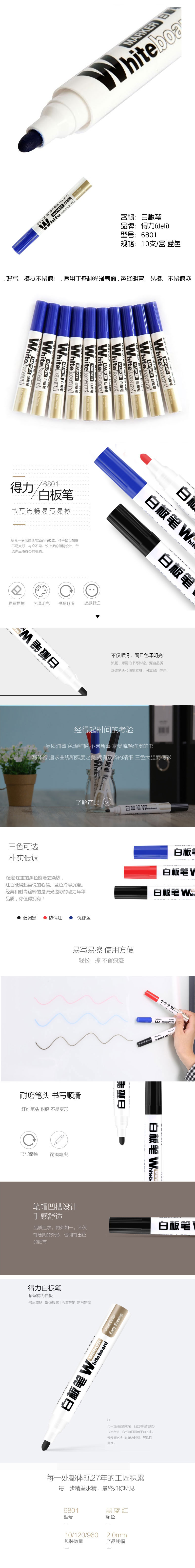 品名:得力(deli) 白板笔 6801 10支/盒 蓝色