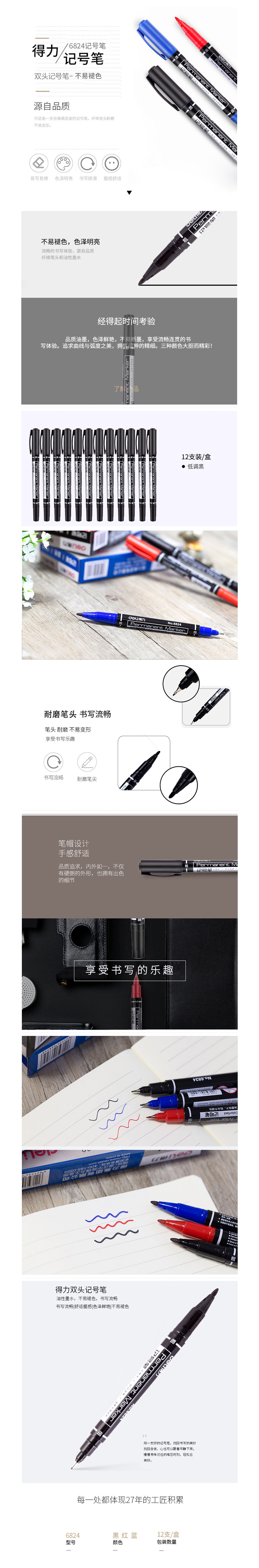 品名:得力(deli) 双头多用记号笔 6824 0.5mm 12支装 黑色