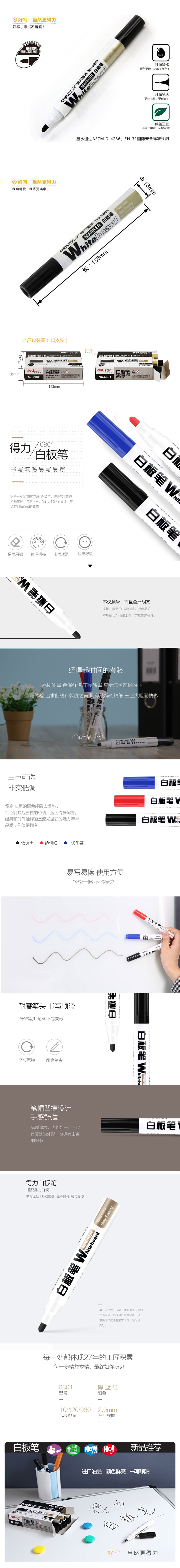 品名:得力(deli) 白板笔 6801 10支/盒 黑色