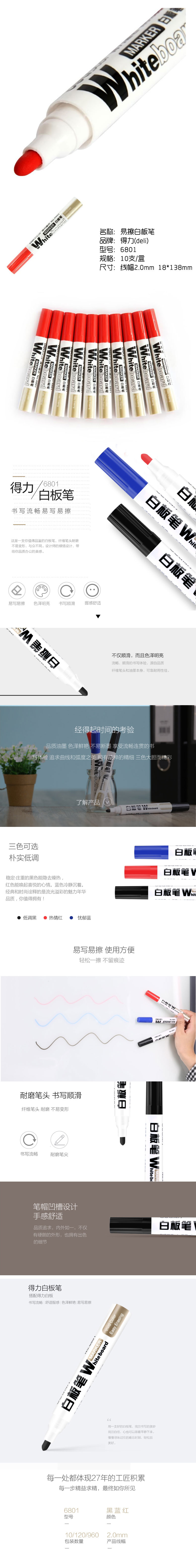 品名:得力(deli) 白板笔 6801 2.0mm 10支/盒 红色