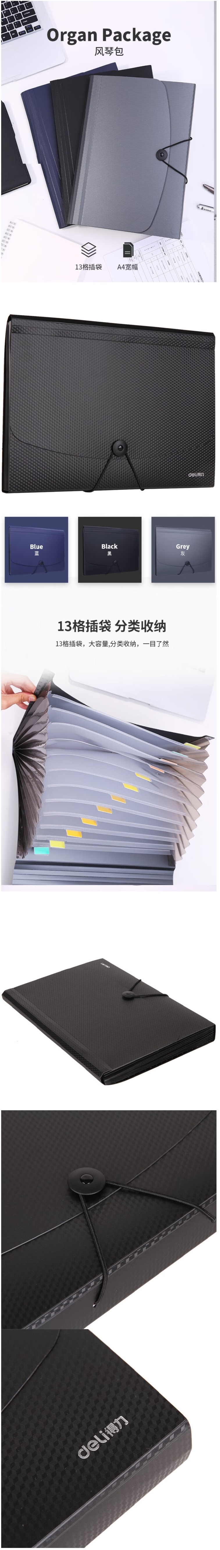 品名:得力 风琴包 5236 A4 13格 搭扣式 黑色
