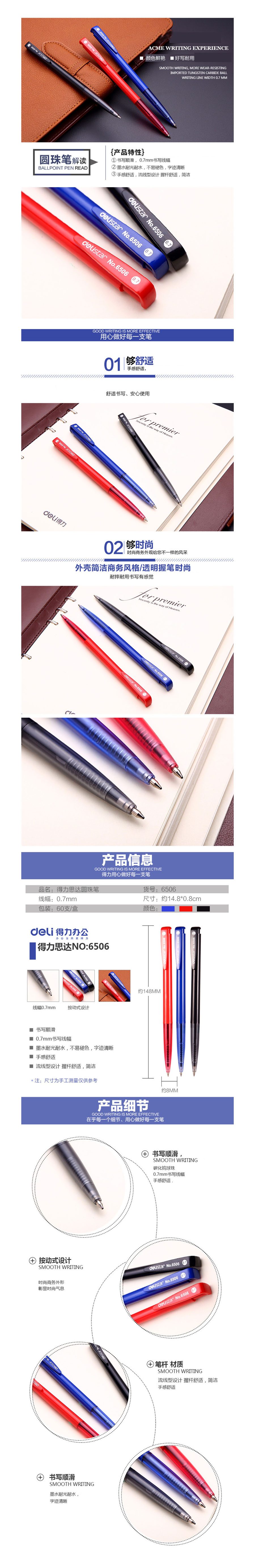 品名:得力 揿动圆珠笔 6506 0.7mm 黑