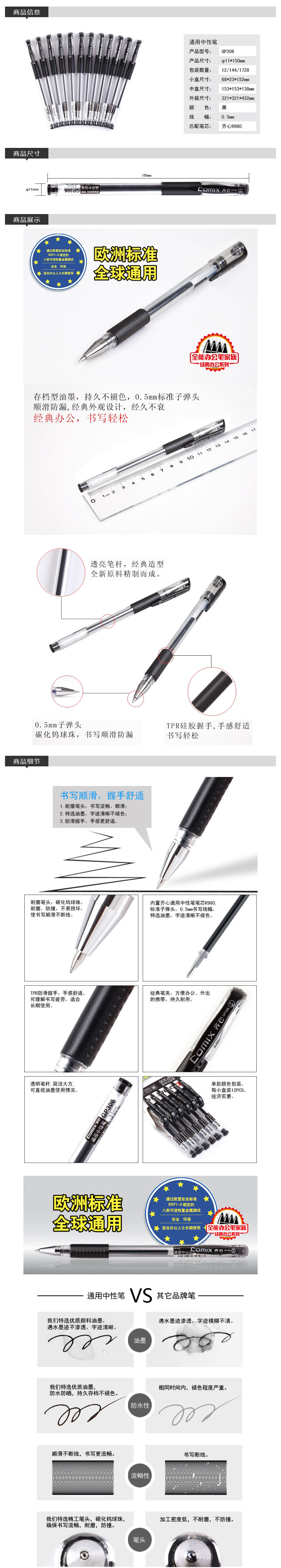 品名:齐心(COMIX) 标准子弹头中性笔 GP306 0.5mm 12支/盒 黑色