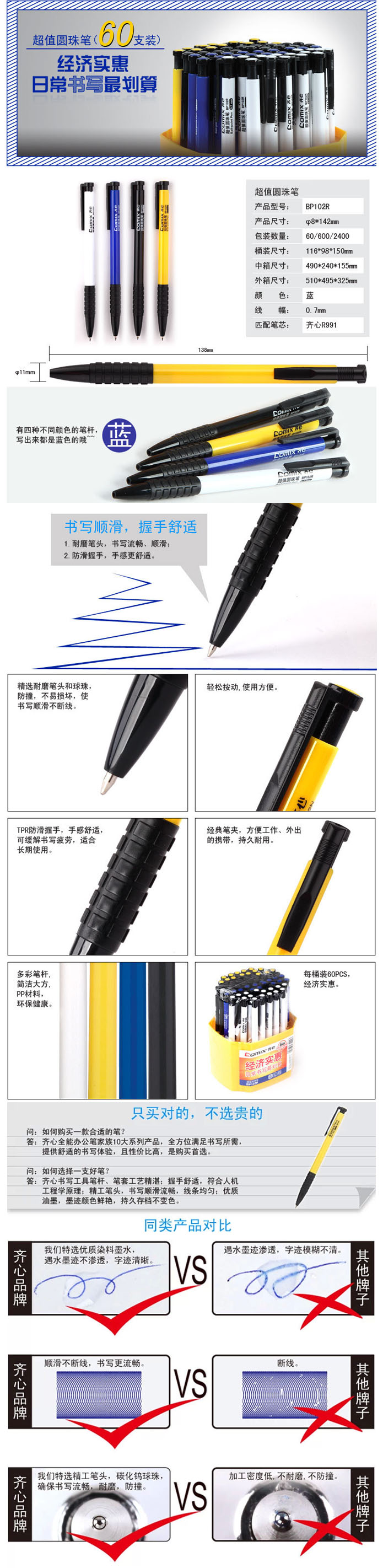 品名:齐心(Comix) 按动圆珠笔 BP102R 0.7mm 60支/桶 蓝色