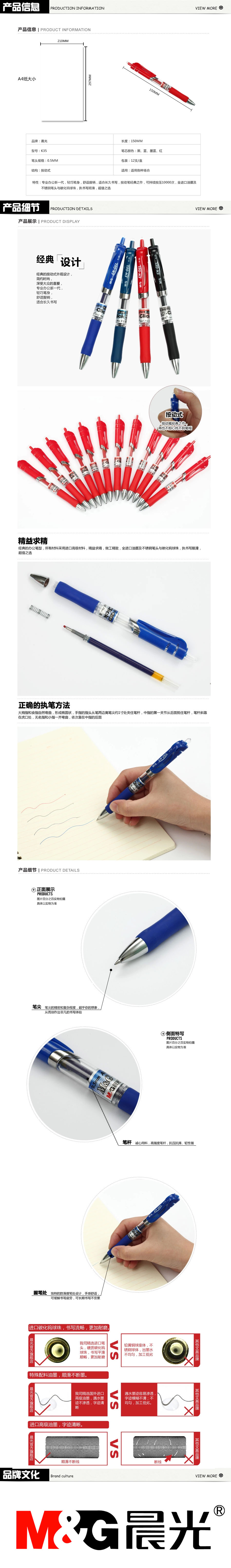 品名:晨光(M&G) 按动中性笔 K-35 0.5mm 12支/盒 蓝色
