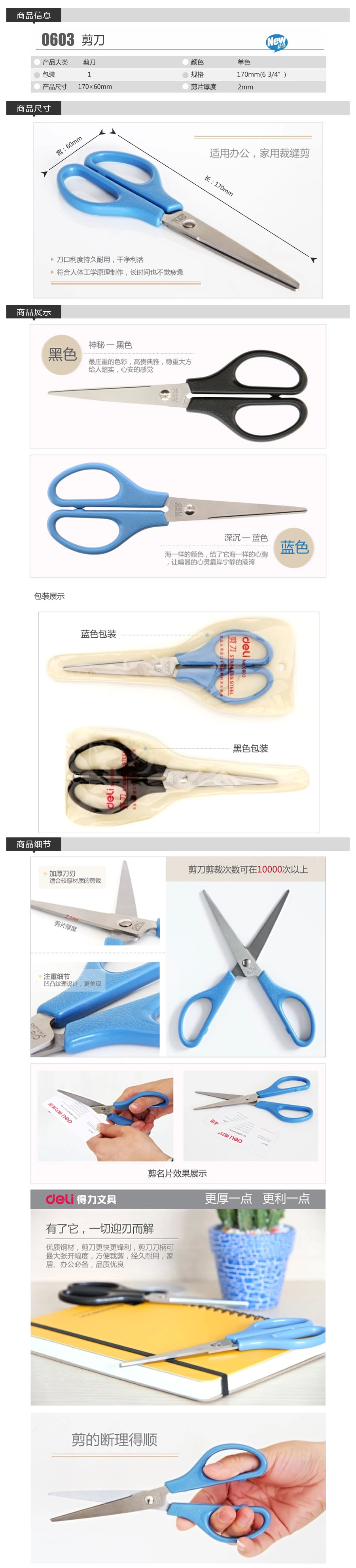 品名:得力(deli) 剪刀 0603 170*60mm 63/4