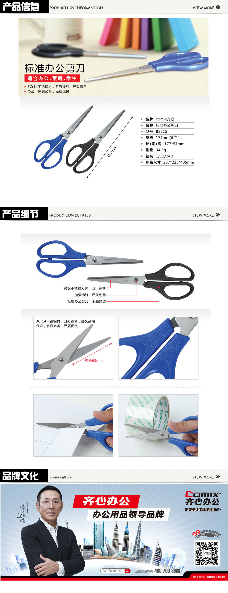 品名:齐心(Comix) 剪刀 B2715 170mm 6.7寸 黑 蓝