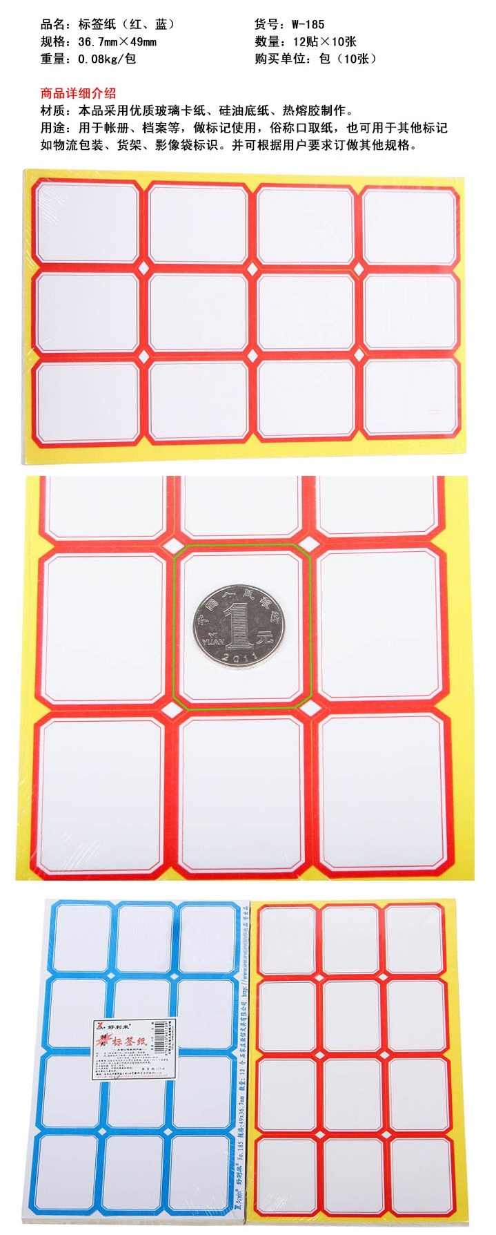品名:亚信 标签纸 NO.185 49*36.7mm 12贴*10片