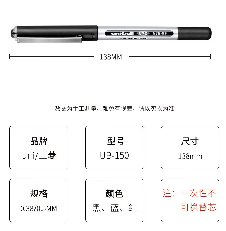 品名:三菱(Uni) 走珠笔耐水性 UB-150-38 0.38mm 黑色
