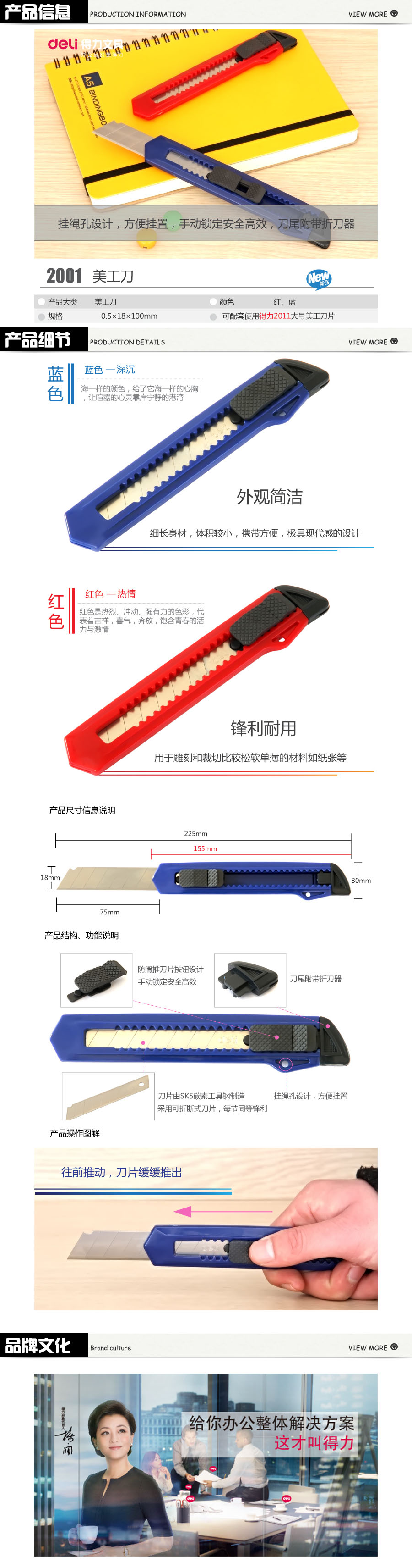品名:得力(deli) 美工刀 2001 0.5x18x100mm