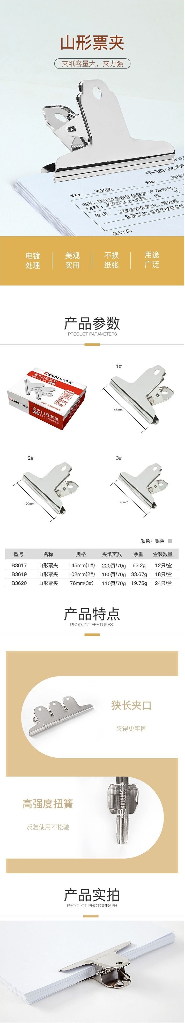 品名:齐心 山形夹 3617 145mm
