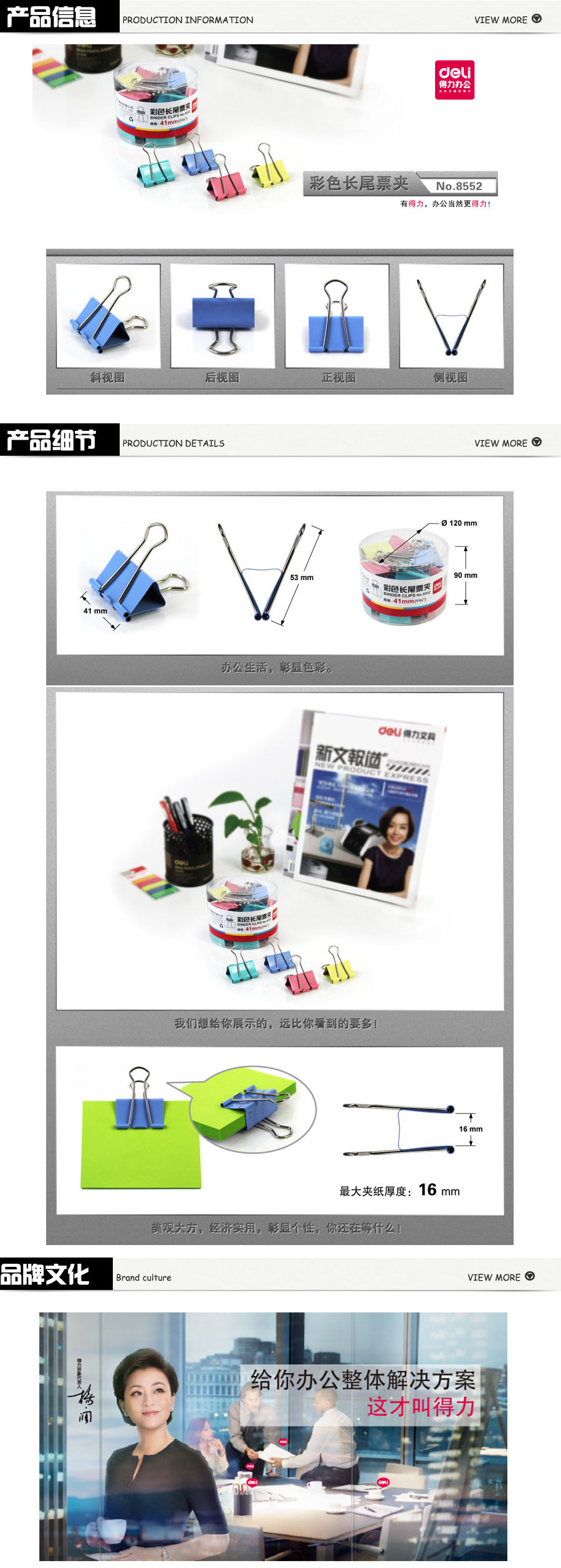 品名:得力(deli) 长尾票夹 8552 41mm 24只装 彩色
