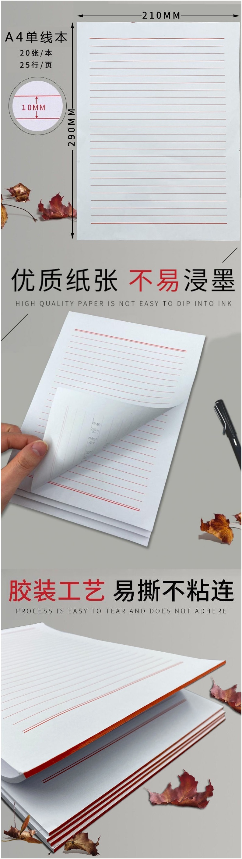 品名:信纸 A4 20张/本 25行/张 单线