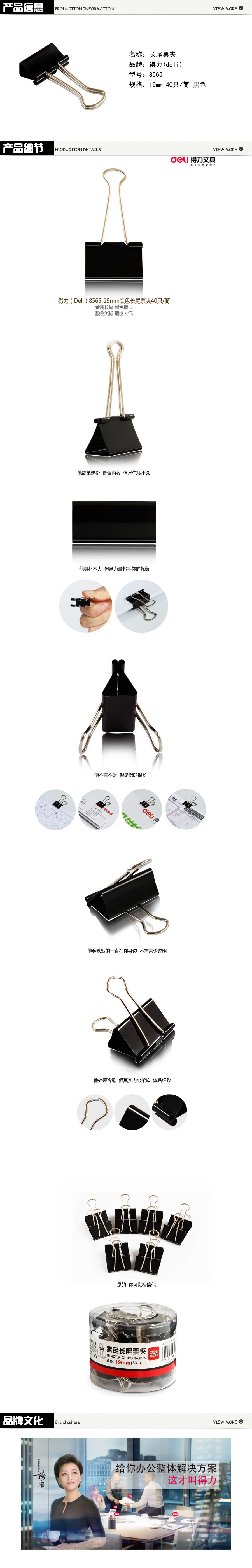 品名:得力(deli) 长尾票夹 8565 19mm 40只/筒 黑色