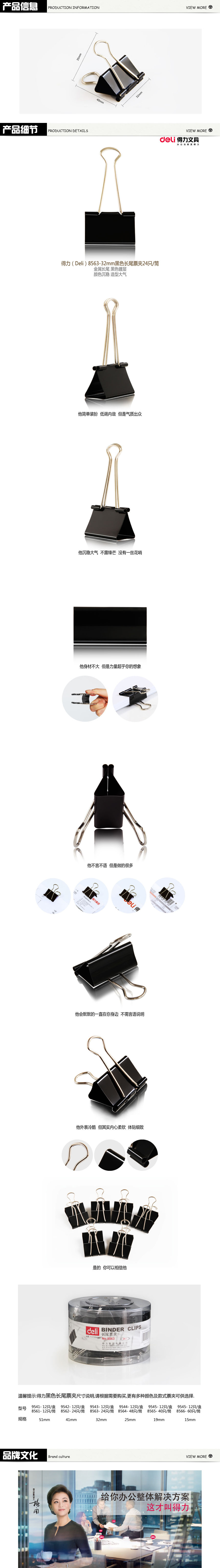 品名:得力(deli) 长尾票夹 8563 32mm 24只/筒 黑色