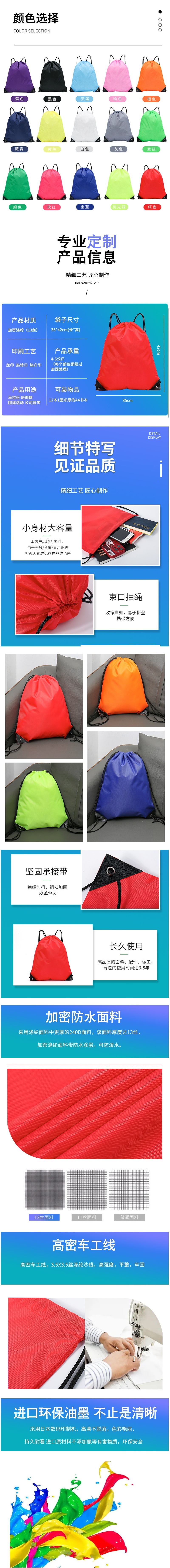 品名:双肩包 运动防水 抽绳 束口
