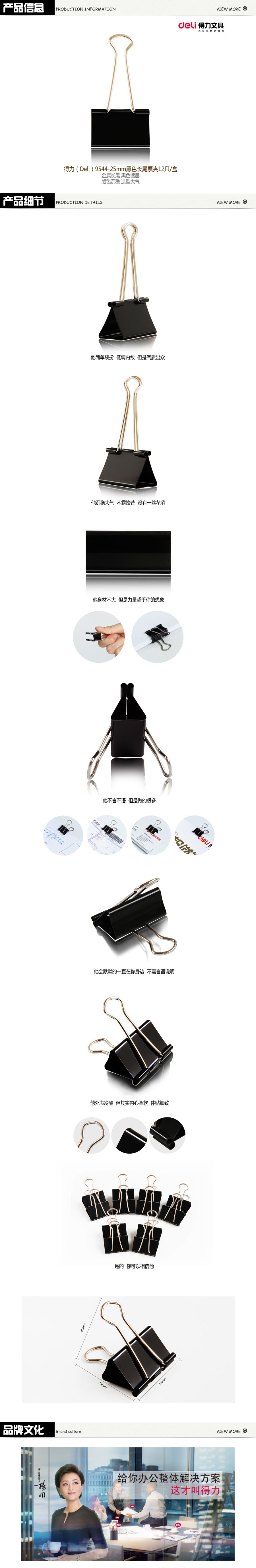 品名:得力(deli) 长尾票夹 9544 25mm 12只装 黑色