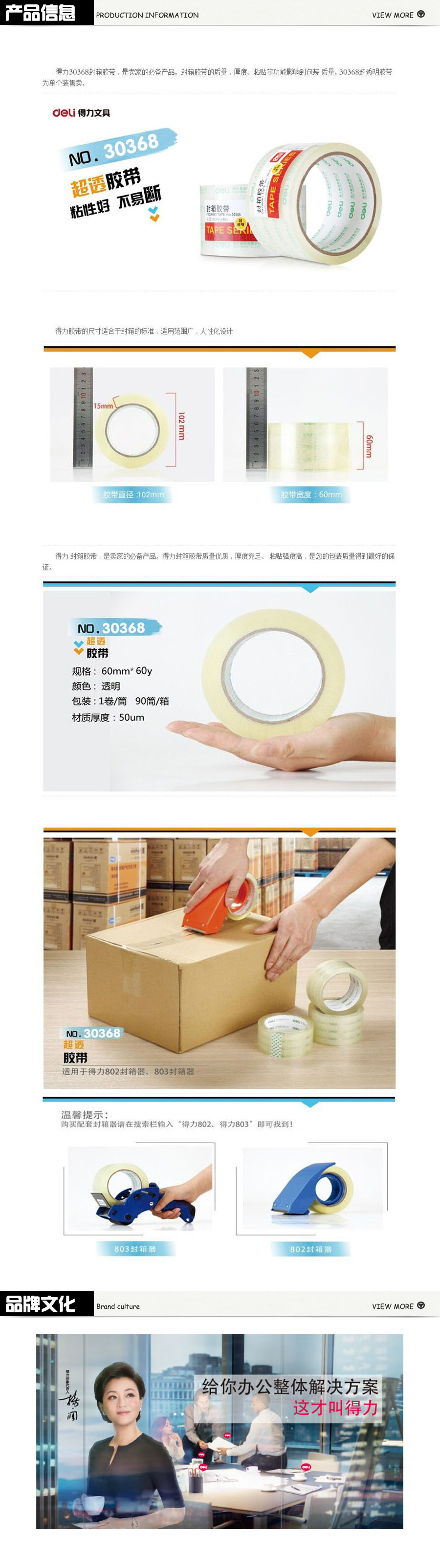 品名:得力(deli) 封箱胶带 30368 60mm×60y×50um