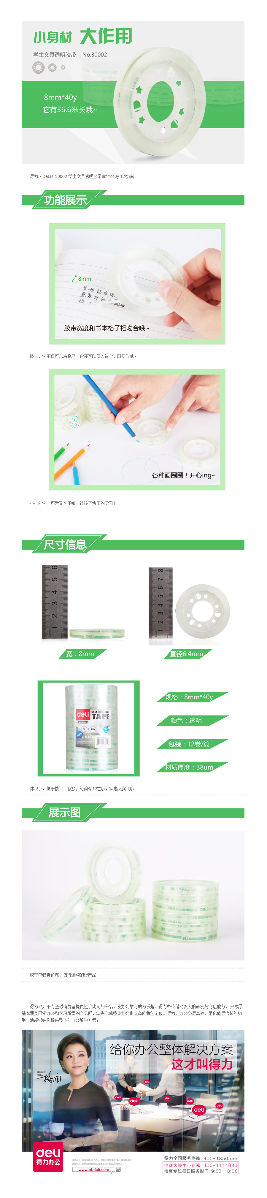 品名:得力 文具胶带 30002 8mm×40y×38um