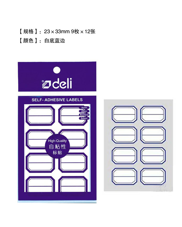 品名:得力 自粘性标贴 7190 23×33mm 12张/袋 白底蓝边