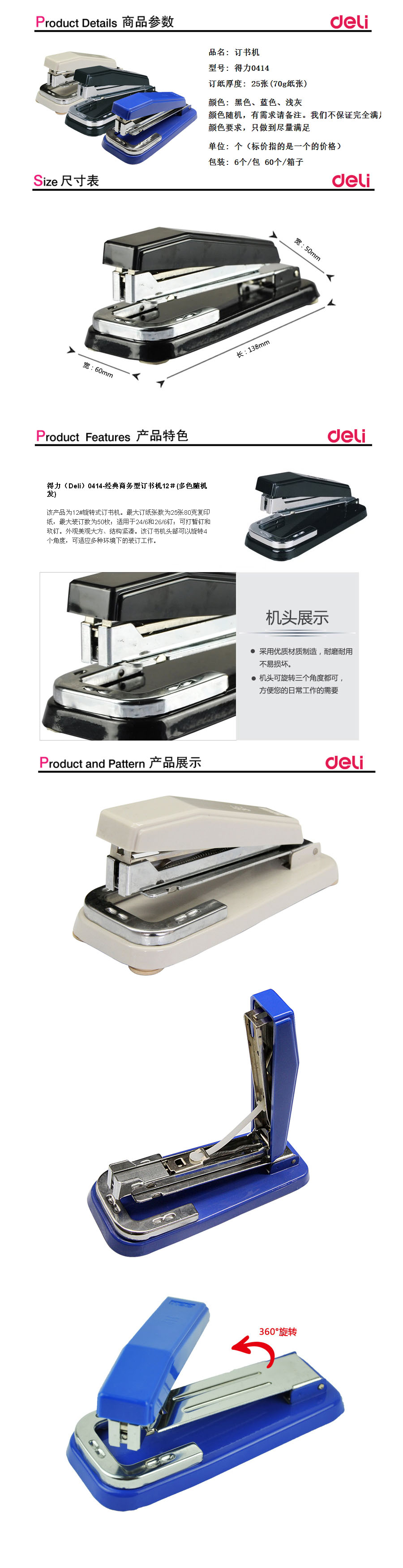 品名:得力(deli) 订书机 0828 12# 可旋转 25pages/80g 颜色随机