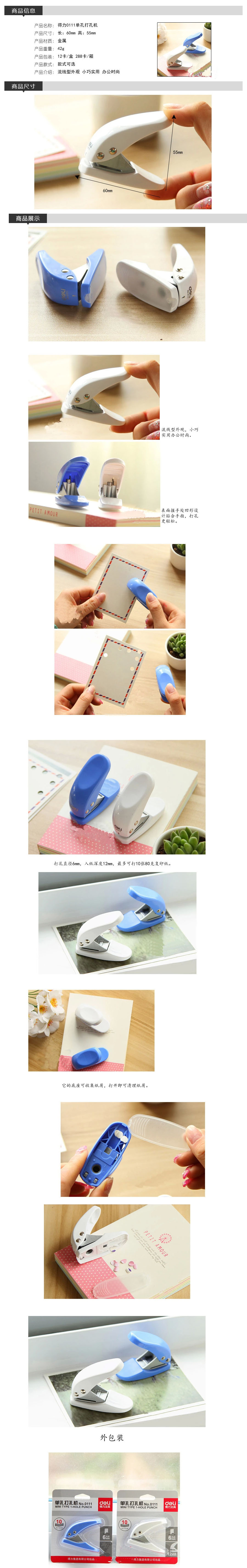 品名:得力(deli) 单孔打孔机 0111 60*23*35mm 10pages/80g