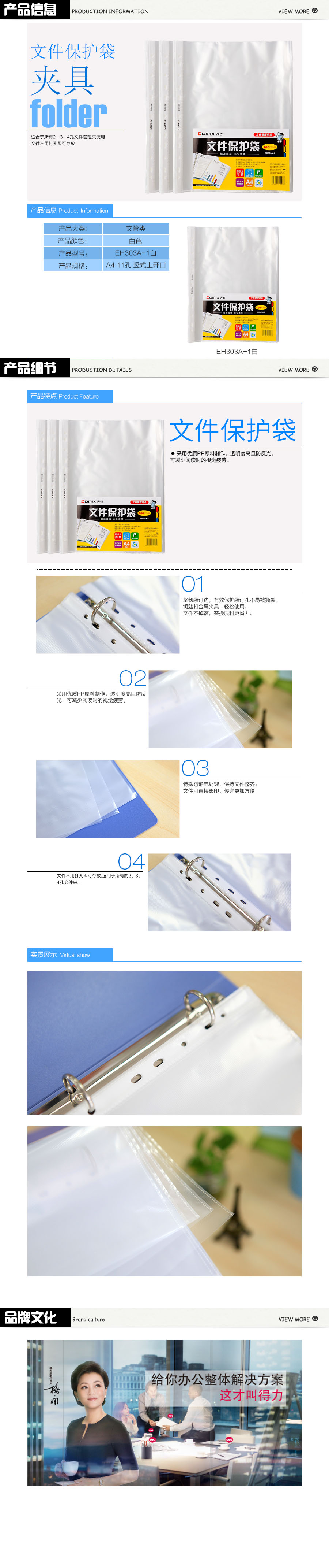 品名:齐心 Comix 文件袋 EH303A A4 11孔 竖式上开口 235*303mm 20个/袋