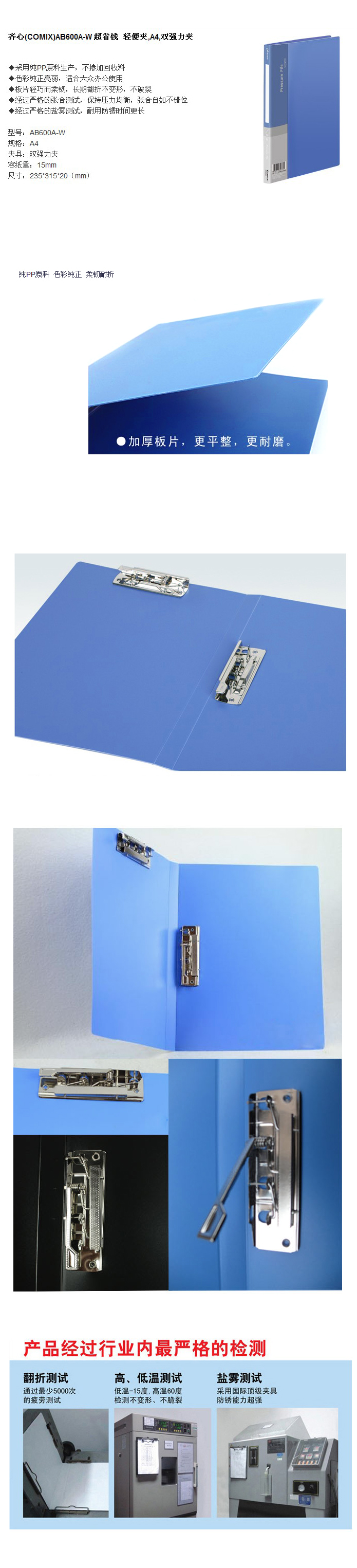 品名:齐心(Comix) 双强力夹 AB600A-W A4 235*315*20mm