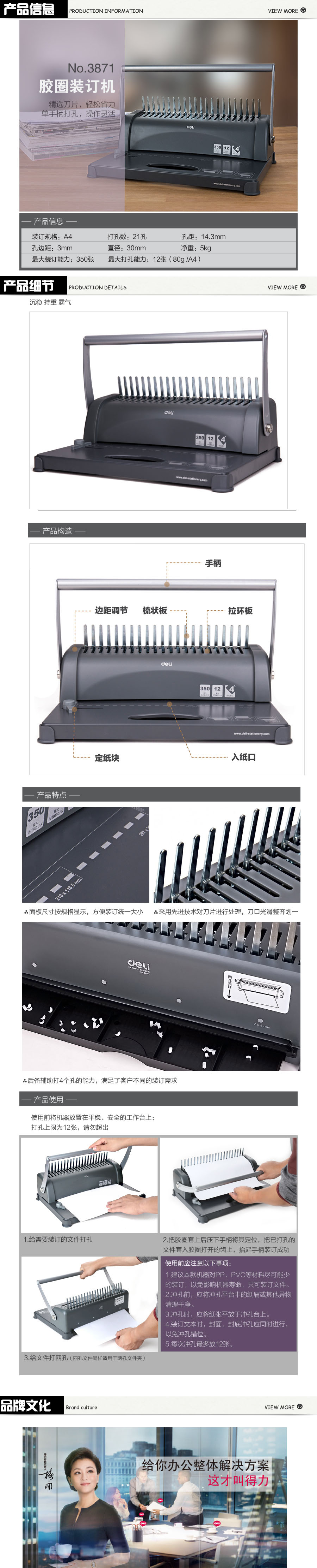 品名:得力(deli) 梳式胶圈装订机 3871 黑 A4