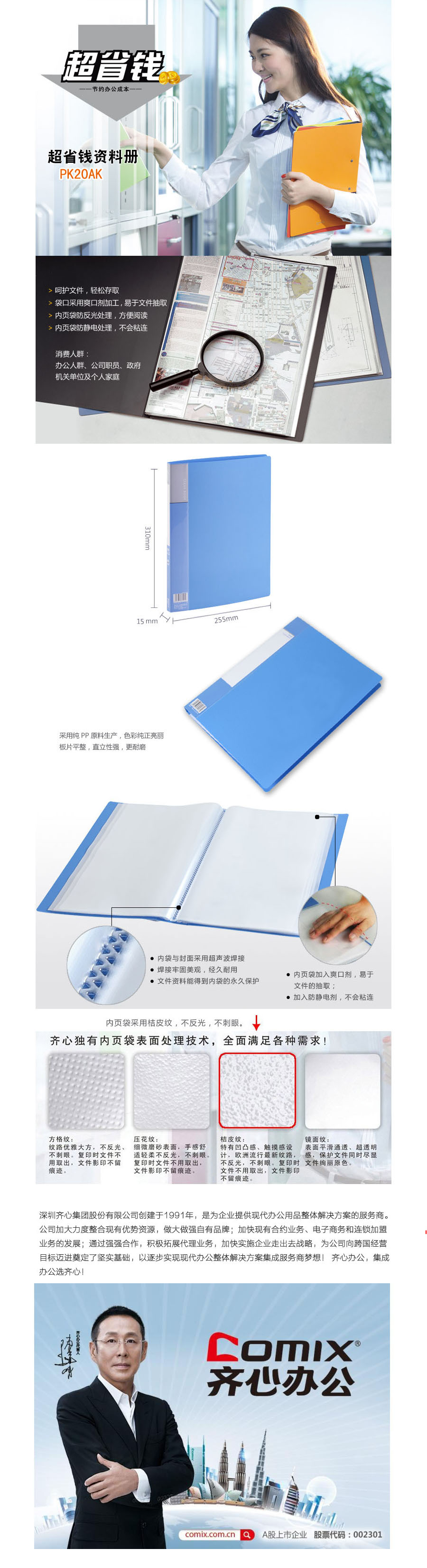 品名:齐心(Comix) 超省钱资料册 PF20AK A4 20袋 无衬纸