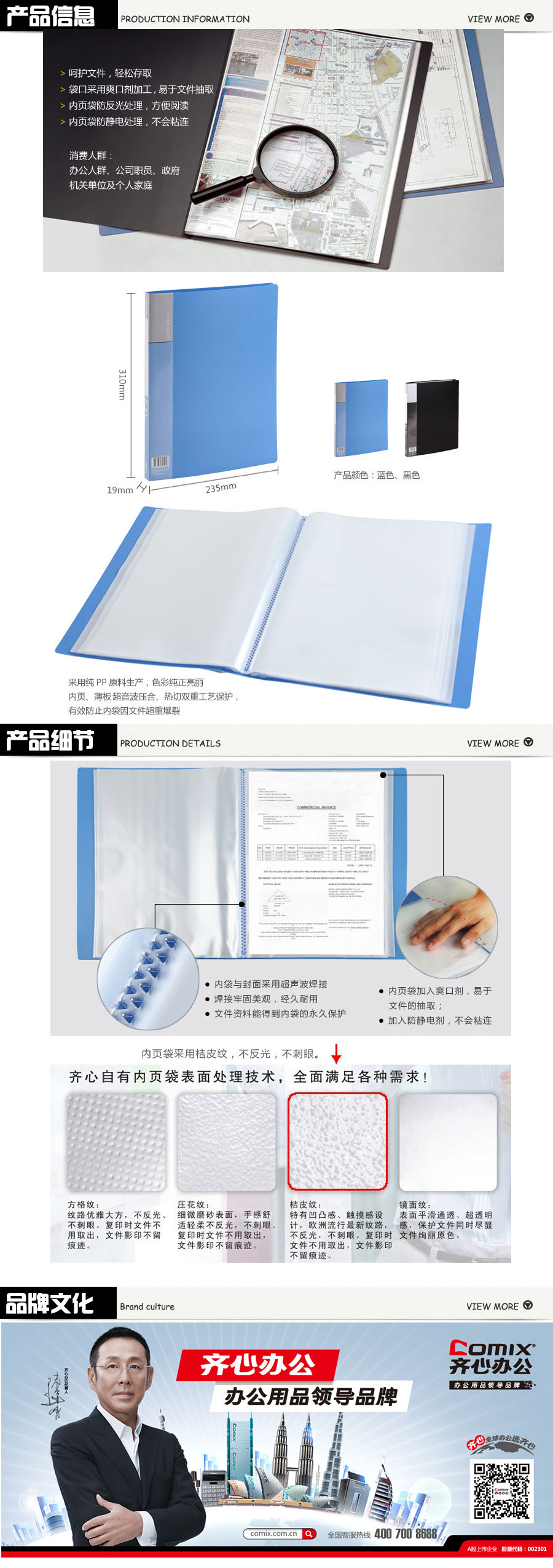 【规格】A4.100pockets