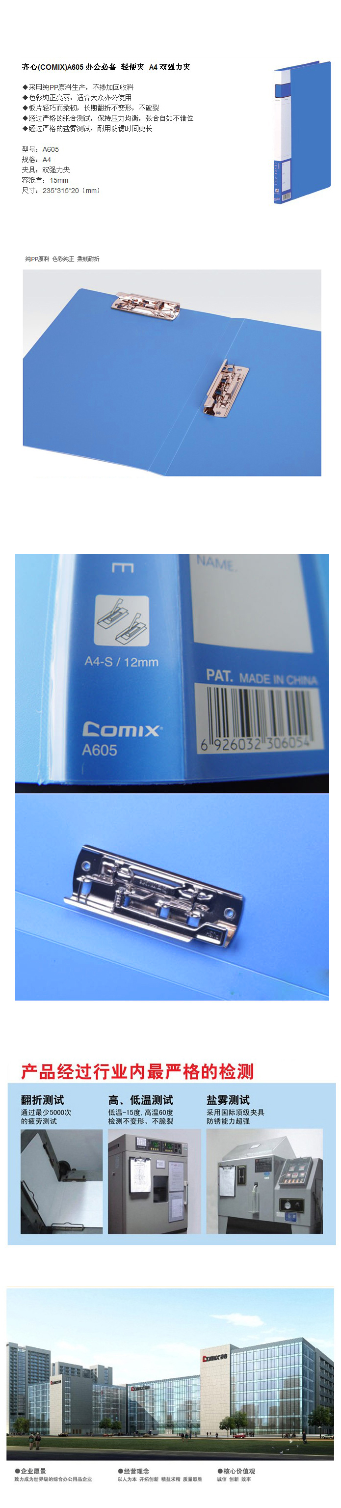 品名:齐心(Comix) 标准型轻便夹 双强力夹 A605 A4 20MM