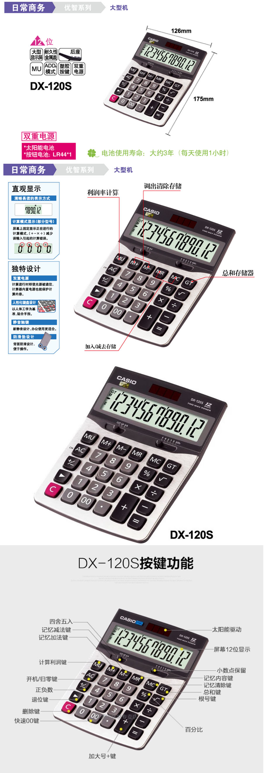 品名:卡西欧(CASIO) 计算器 DX-120S 35*126*175mm