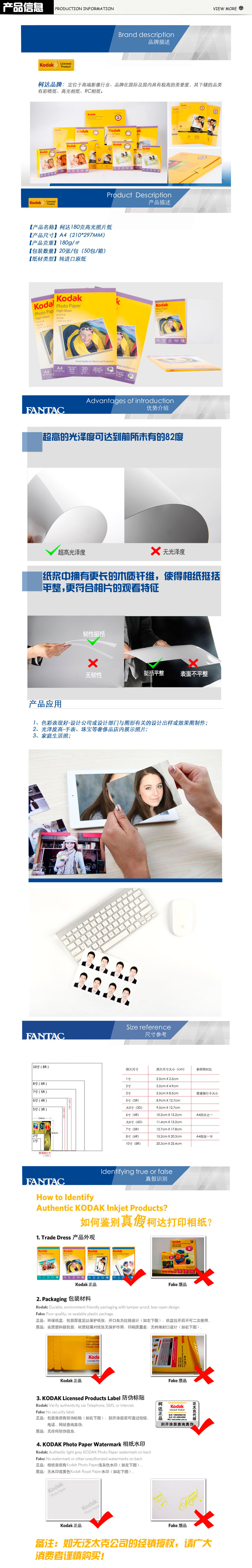 品名:柯达 照片打印纸 A4 180g 20张/包