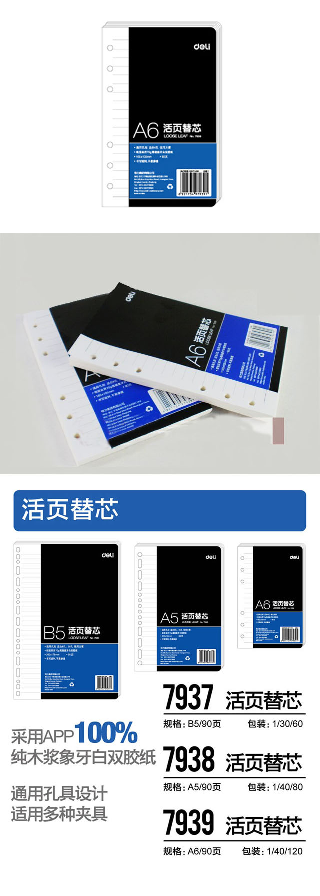 品名:得力 象牙白活页替芯 7939 A6