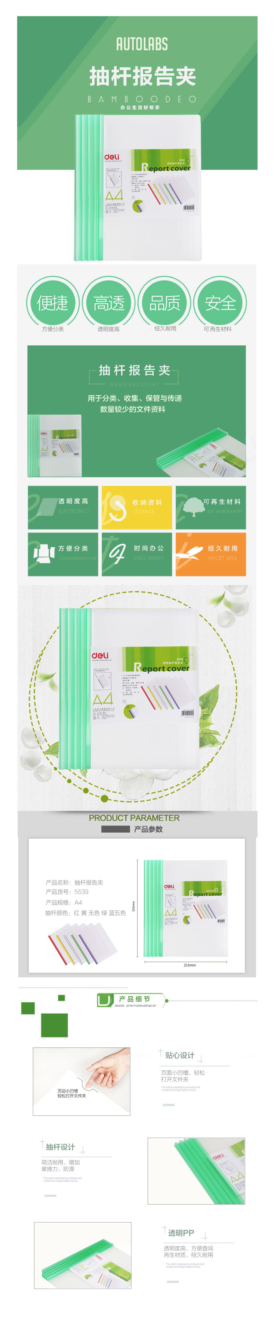 品名:得力(deli) 抽杆文件夹 5539 A4 218×310×11mm 5只装