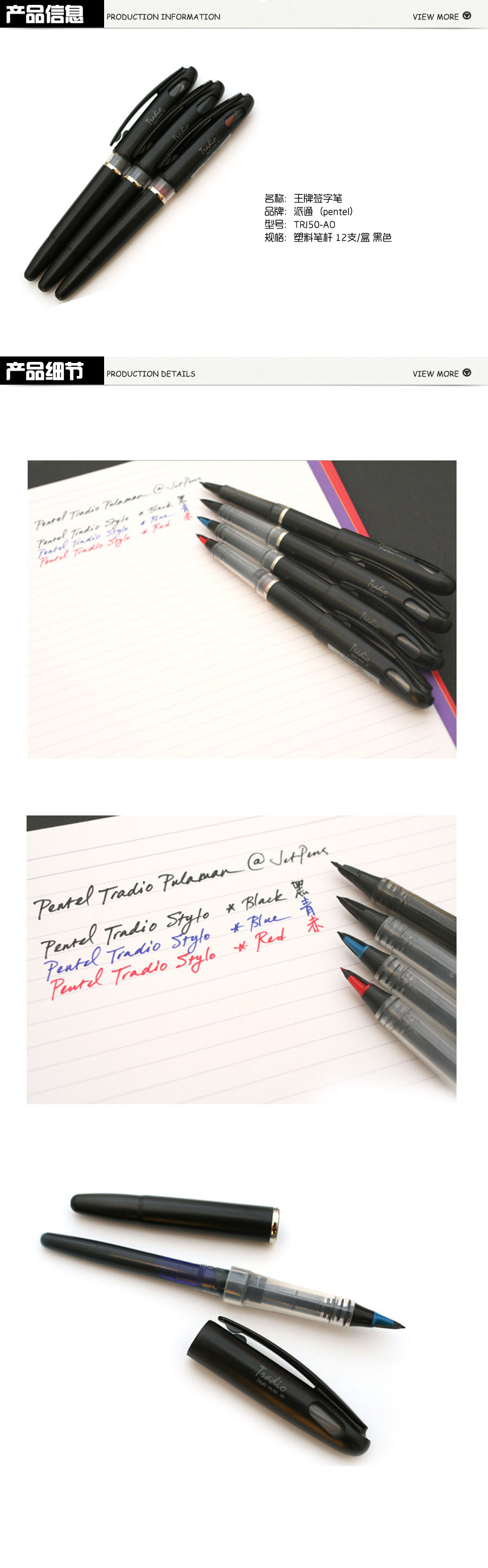 品名:派通(pentel) 王牌签字笔 TRJ50-AO 塑料笔杆 12支/盒 黑色