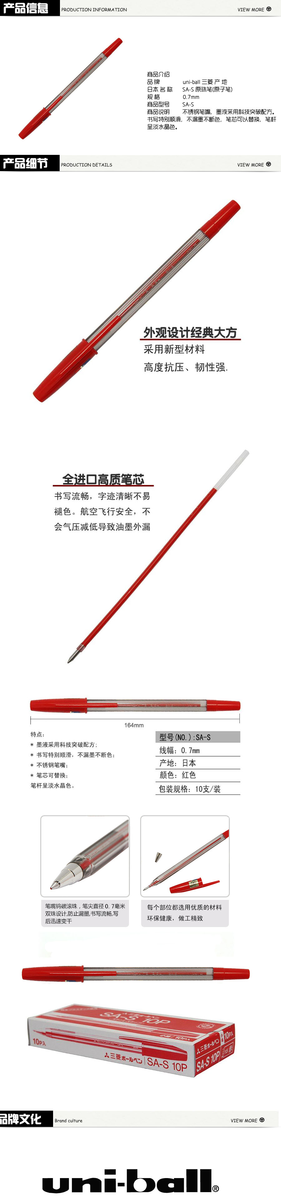 品名:三菱Uni 圆珠笔 SA-S 0.7mm 10支装 红色