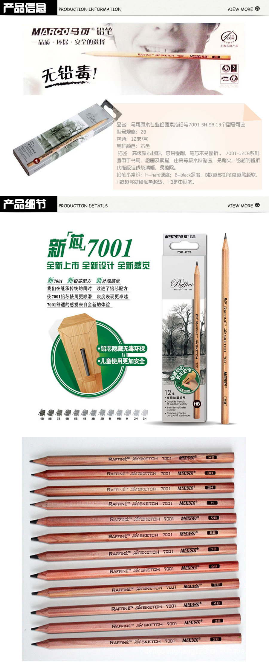 品名:马可(Marco) 高级绘图铅笔 7001-2B 木质 1盒/12支