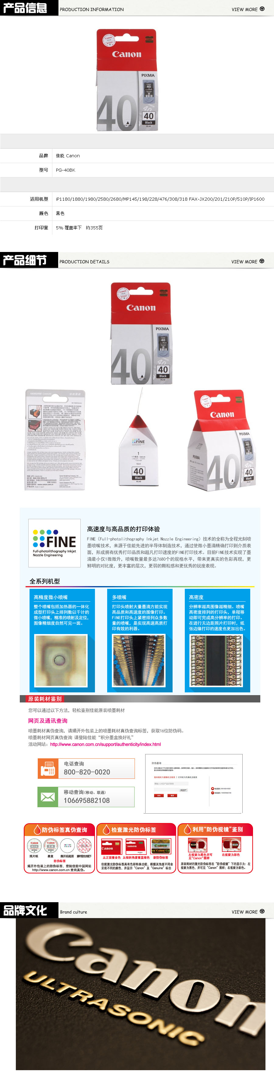 品名:佳能(Canon) 墨盒 PG-40BK 黑色(适用IP1180/1980 MX308/318 MP198)