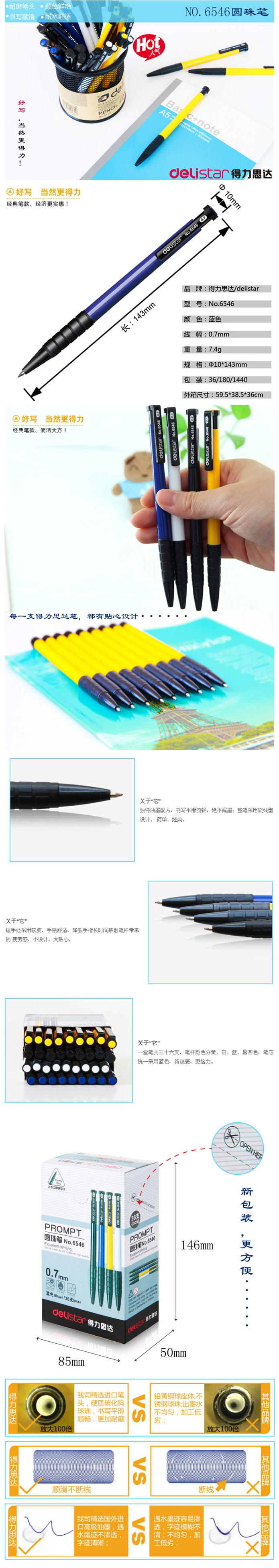品名:得力(deli) 经济实惠 圆珠笔 6546 0.7mm 36支装 混合(单支装)