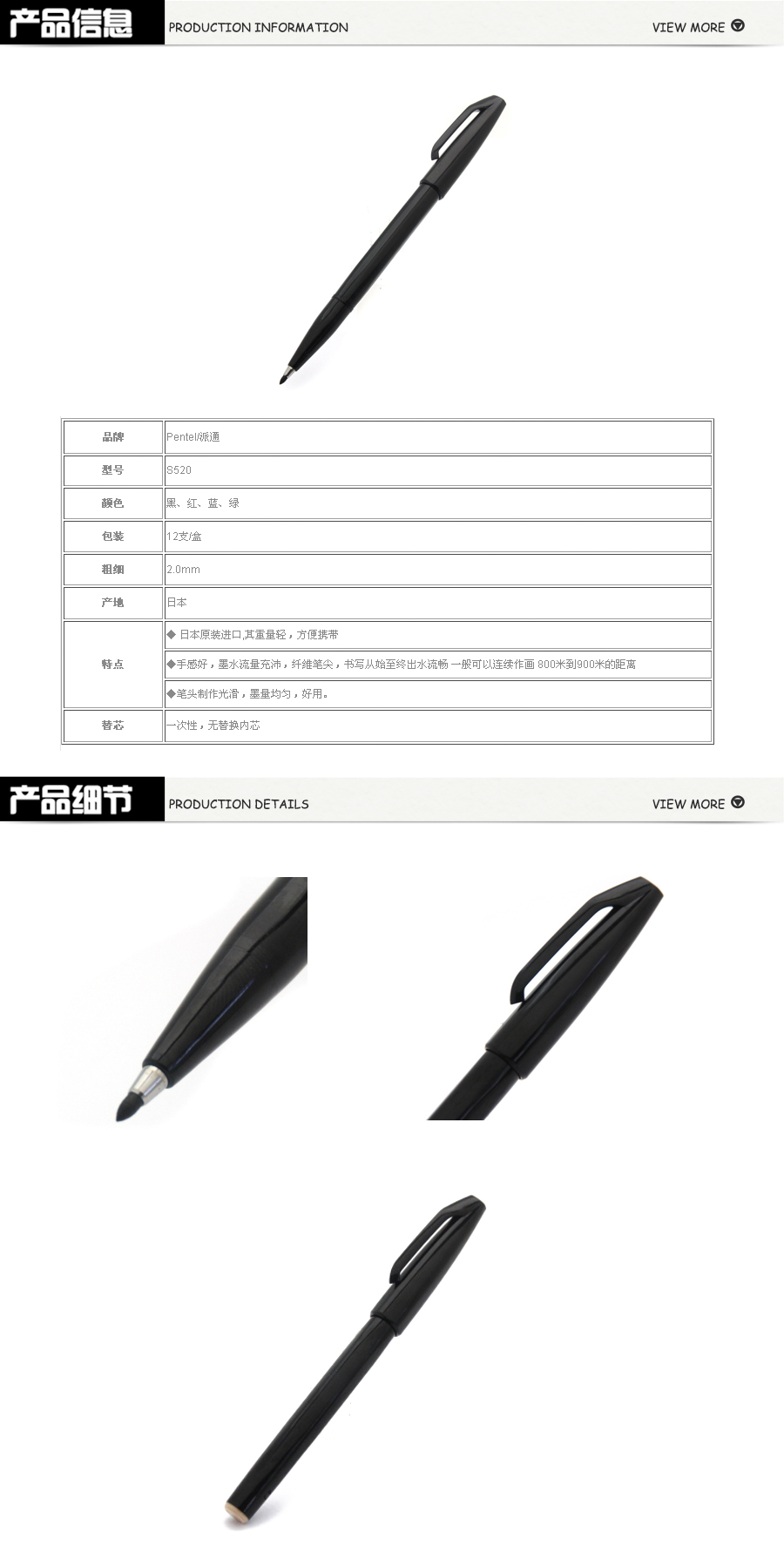 品名:派通(Pentel) 水性笔 S520 2.0mm 黑色