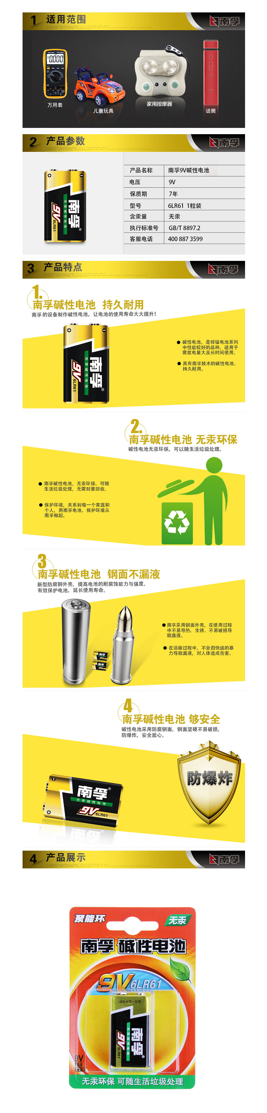 品名:南孚(NANFU) 电池 6LR61 聚能环 9V