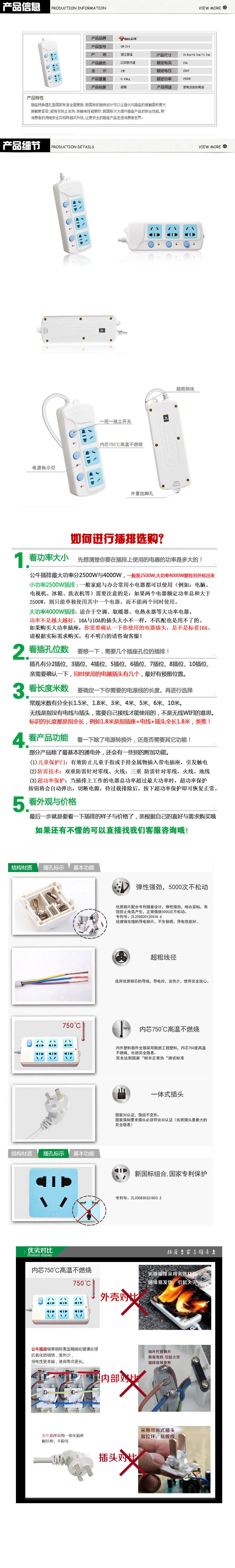 品名:公牛(BULL) 电源插座 GN-314 单排3孔1.8米