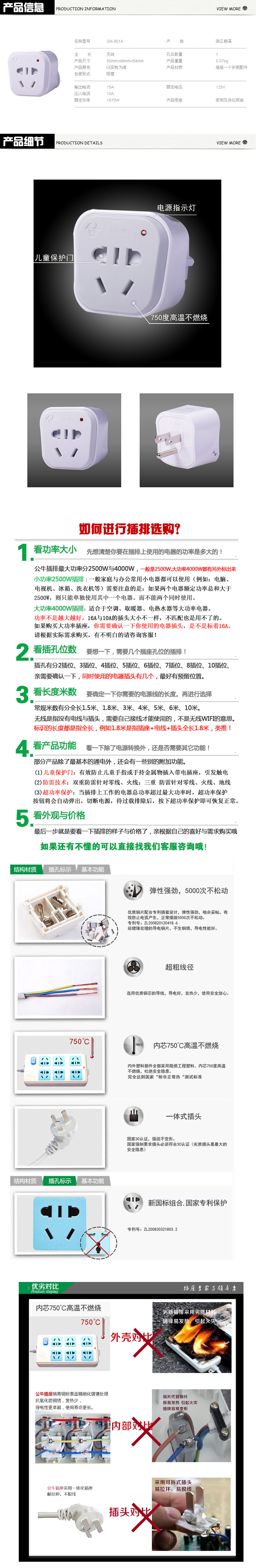 品名:公牛(BULL) 转换器插座 GN-901A 单孔 125V 15A
