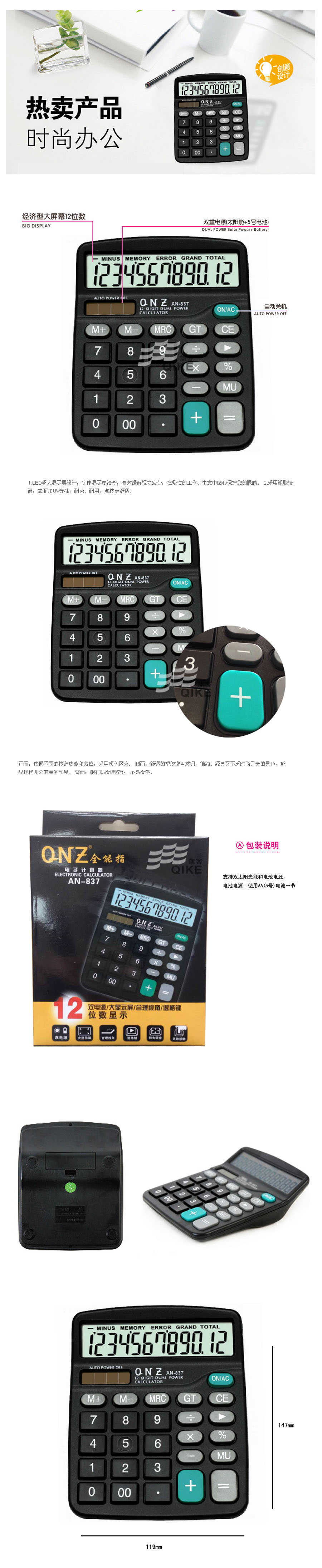 品名:全能指(QNZ) 电子计算器 AN-837 147×119mm