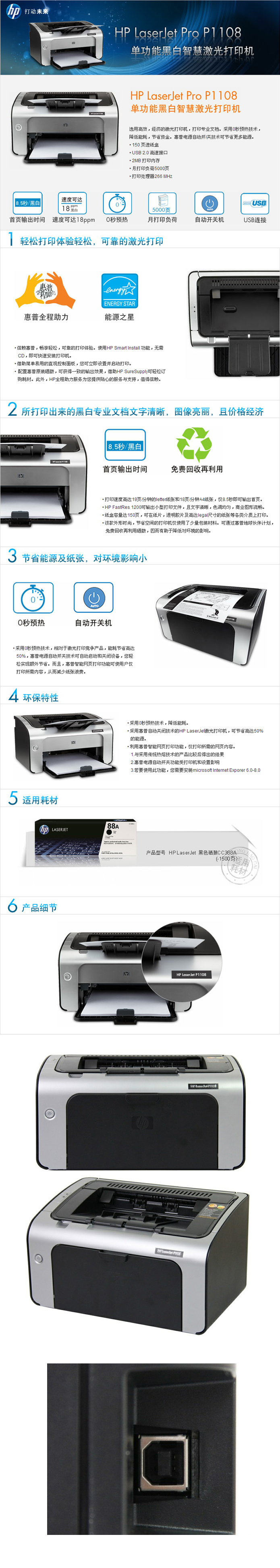 品名:惠普(HP) 黑白激光打印机 P1108 A4 1200x1200dpi 达到18ppm