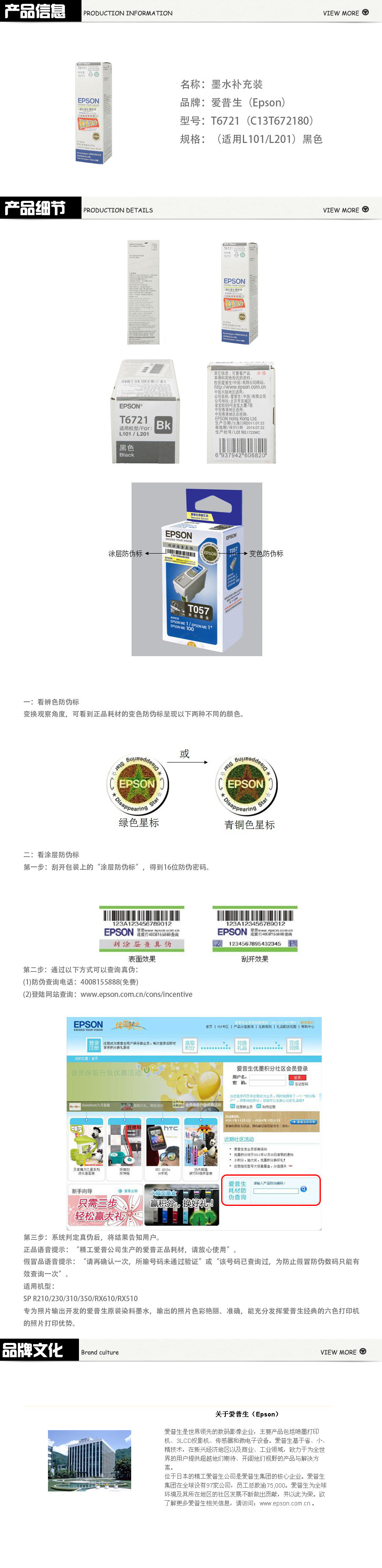 品名:爱普生(Epson) 墨水补充装 T6721(C13T672180) (适用L101/L201)黑色