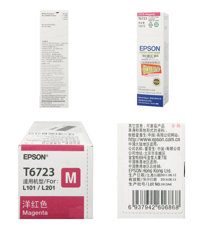品名:爱普生(Epson) 墨水补充装 T6723(C13T672380) 洋红色(适用L101/L201)